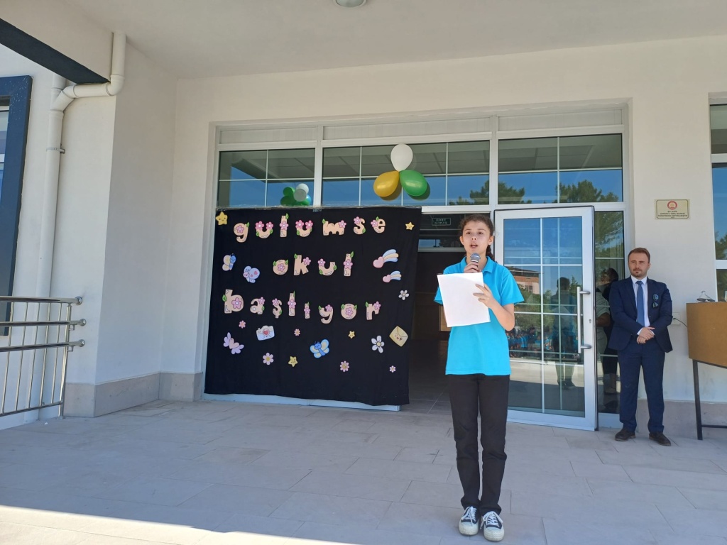 Programda öğrenciler, şiirler okuyarak ve hazırladıkları kısa gösterilerle misafirlere keyifli anlar yaşattı. Okula yeni başlayan birinci sınıf öğrencilerine 8. Sınıf öğrencileri rüzgârgülü hediye etti. Tören sonunda öğretmenler ve veliler, öğrencilerle sohbet ederek yeni eğitim-öğretim yılı için motivasyonlarını pekiştirdi.